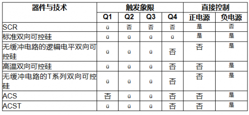雙向控硅、ACS和ACST可以在每個象限或只在部分象限被激活,具體情況視開關(guān)所采用的半導體技術(shù)。