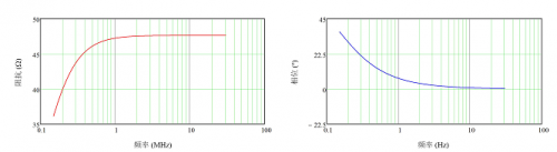 對于使用 EMI 接收器或頻譜分析儀進行的測量,噪聲信號可通過高通濾波器網絡(如圖 3 所示)獲得,該網絡的耦合電容為 0.1μF,放電電阻為 1kΩ,測量端口的端接電阻為 50Ω 。圖 4 顯示了在 150kHz 至 30MHz 的頻率范圍,(50μH + 5Ω) || 50Ω LISN 的模擬阻抗圖。
