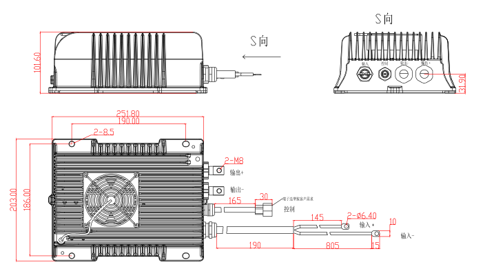 產(chǎn)品尺寸:251(長(zhǎng))x203(寬)x101.6(高)(自然冷)