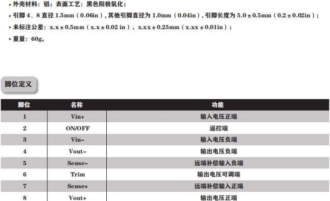 | 輸出過流保護點 | 3.9 | 4.3 | 6.0 | A | Vin=28VDCVout=28VDC,Tc=25℃ 打嗝保護模式,自恢復 |