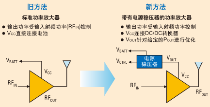 | 圖2:在標(biāo)準(zhǔn)手機(jī)中,功率放大器在大多數(shù)時間內(nèi)發(fā)射低功率電平,采用功率放大器電源穩(wěn)壓器會提高功率節(jié)省的概率。 |