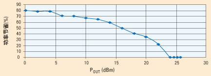 圖4:當(dāng)功率放大器由電源穩(wěn)壓器供電時,功率節(jié)省的百分比 |