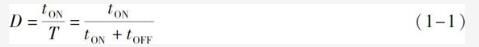 式中,T為開關,S通斷周期;tON為開關S導通時間;TOFF為開關S截止時間。